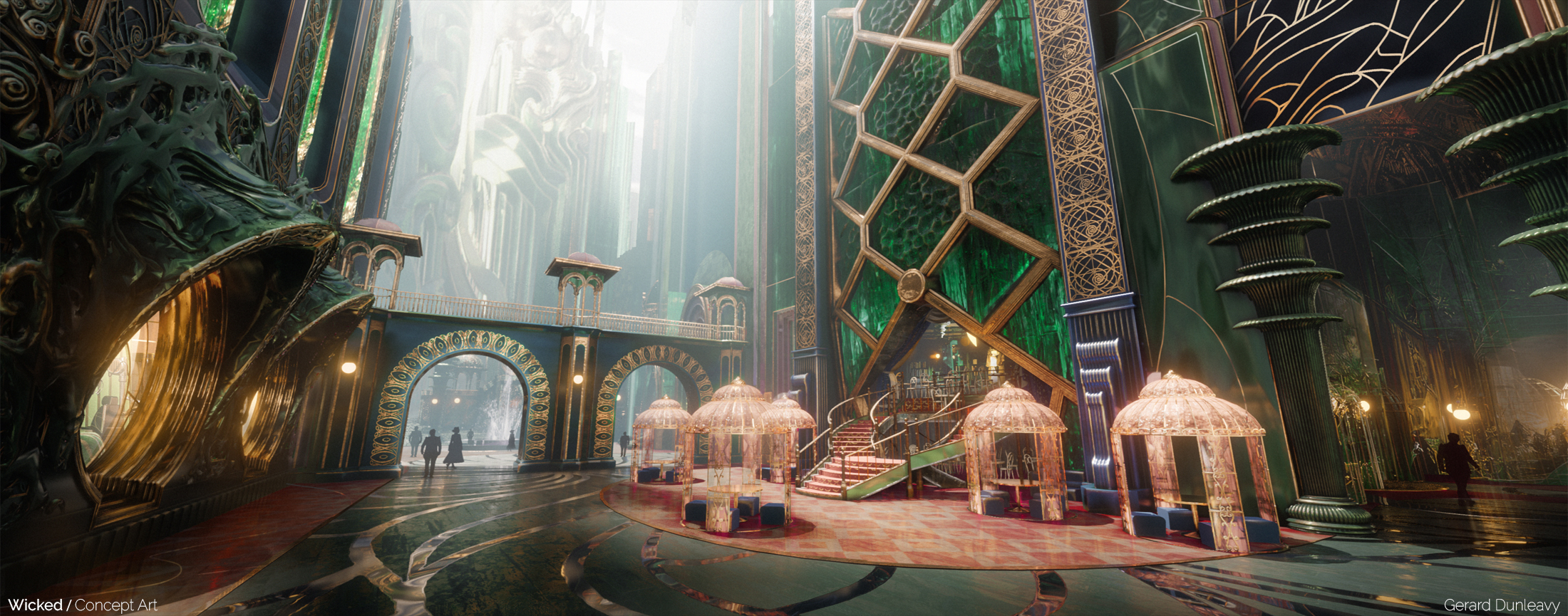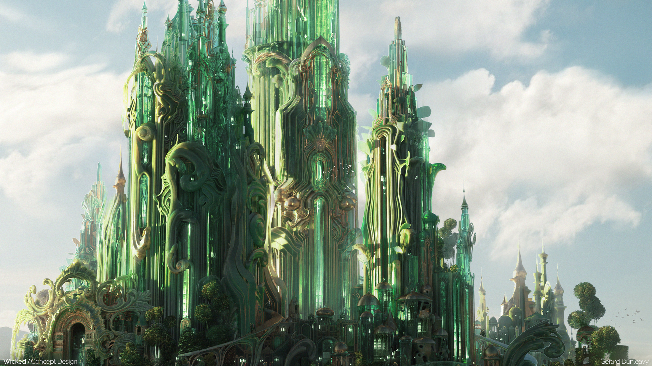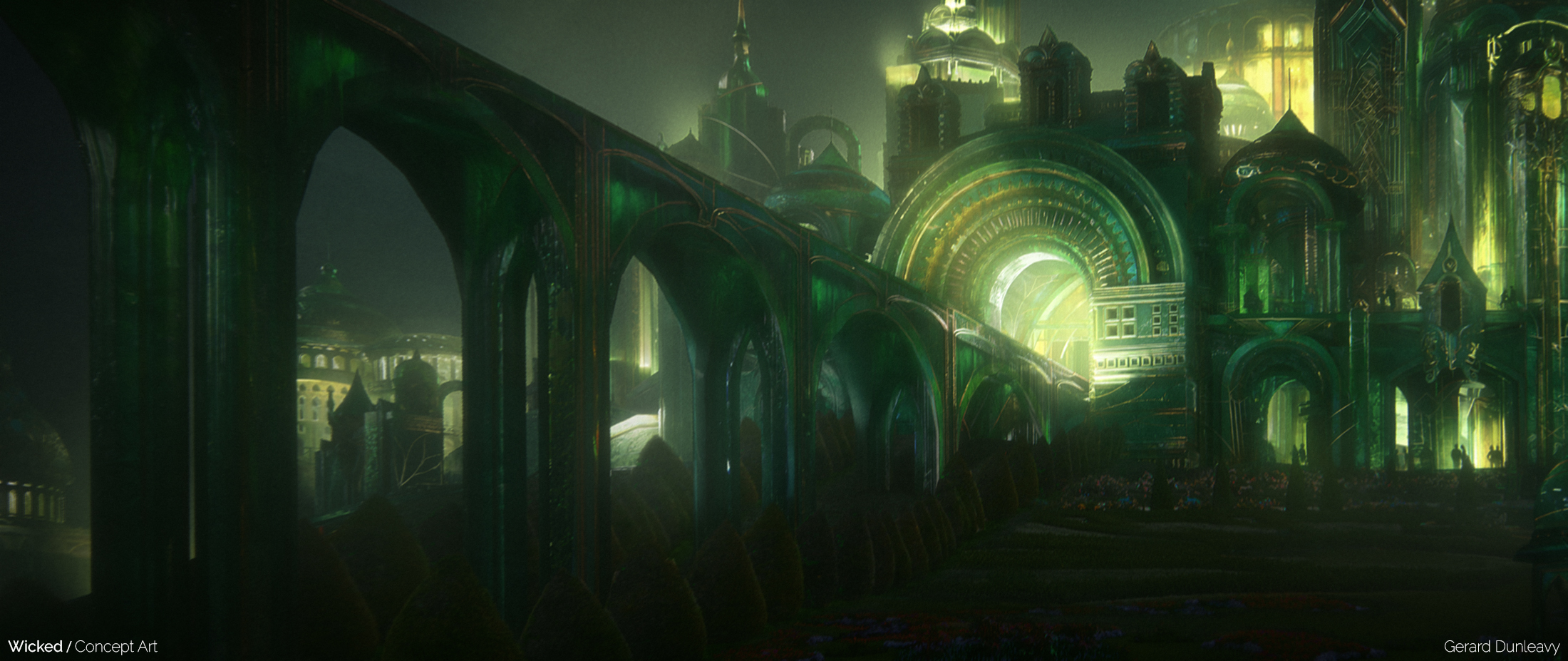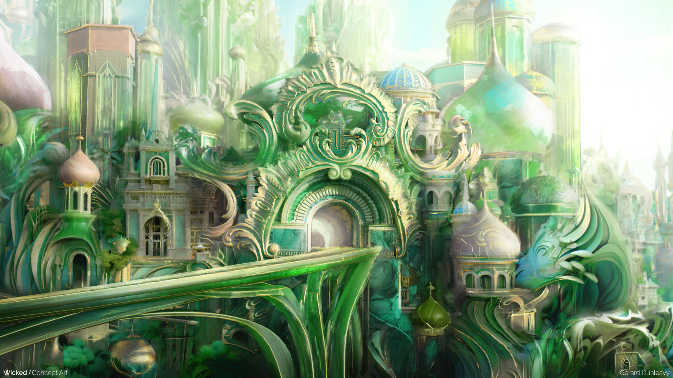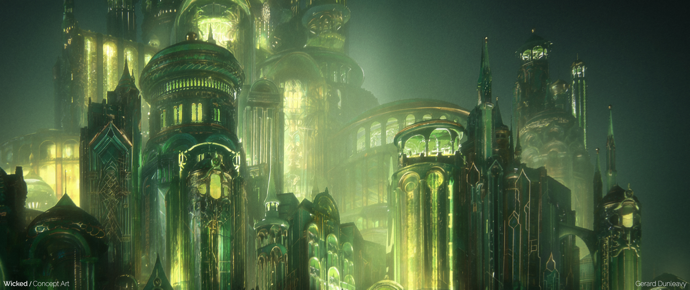 We explored so many ideas for Shiz, Munchinkin Land, giant mechanical wizards and of course the iconic Emerald City. I will never forget the day I stepped onto the Emerald City film set, Such a surreal experience to explore the Ozian streets and to see the designs jump out of the computer and come to life!
